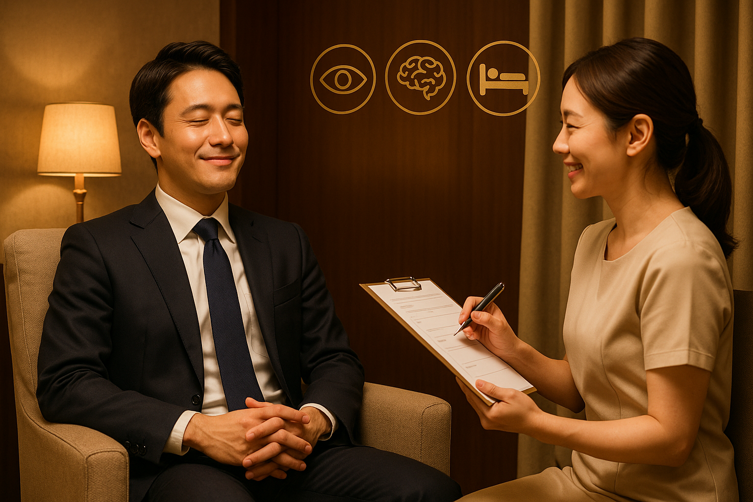 【2】来店&カウンセリング(目・脳・睡眠チェック)